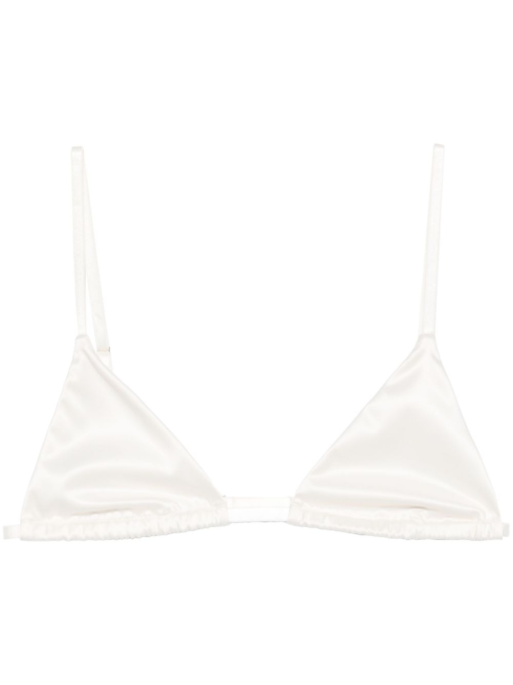 satin bralette Highlights - Milk white - Recycled polyester blend - Stretch-design - Satin weave - Rear clasp fastening - Adjustable spaghetti straps - Triangle cup - Elasticated trim - Full lining Imported Composition Outer: Recycled Polyester 92%, Elastane 8% Lining: Recycled Polyester 92%, Elastane 8% SIZE & FIT Model measurements Height 5 ft 11 in(1.8 m) Bust/Chest 32.67 in(83 cm) Hips 36.22 in(92 cm) Waist 24.4 in(62 cm) FittingInformation Designed for a close fit throughout The adjustable shoulder straps allow for a preferred fit when worn Made from a midweight stretch fabric, this piece offers elasticity and flexibility when worn