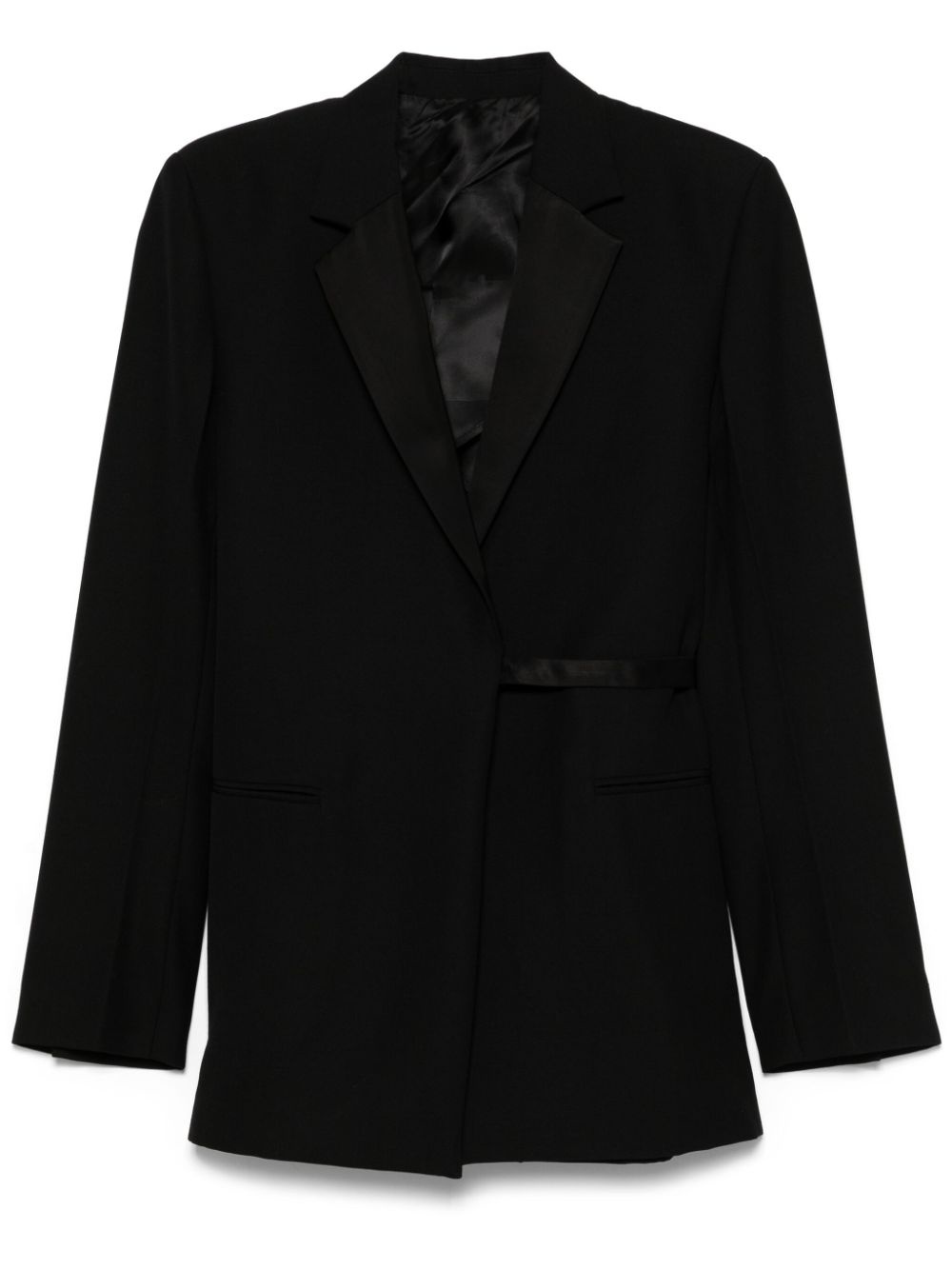 satin-lapels wrap blazer Highlights - Black - Side tie fastening - Long sleeves - Two front jetted pockets Imported Composition Other fibres 100% SIZE & FIT Model measurements Height 5 ft 11 in(1.8 m) Bust/Chest 31.49 in(80 cm) Hips 35.82 in(91 cm) Waist 24.8 in(63 cm) FittingInformation Designed for a wraparound style that can be adjusted to your preference Made from a midweight non-stretch fabric