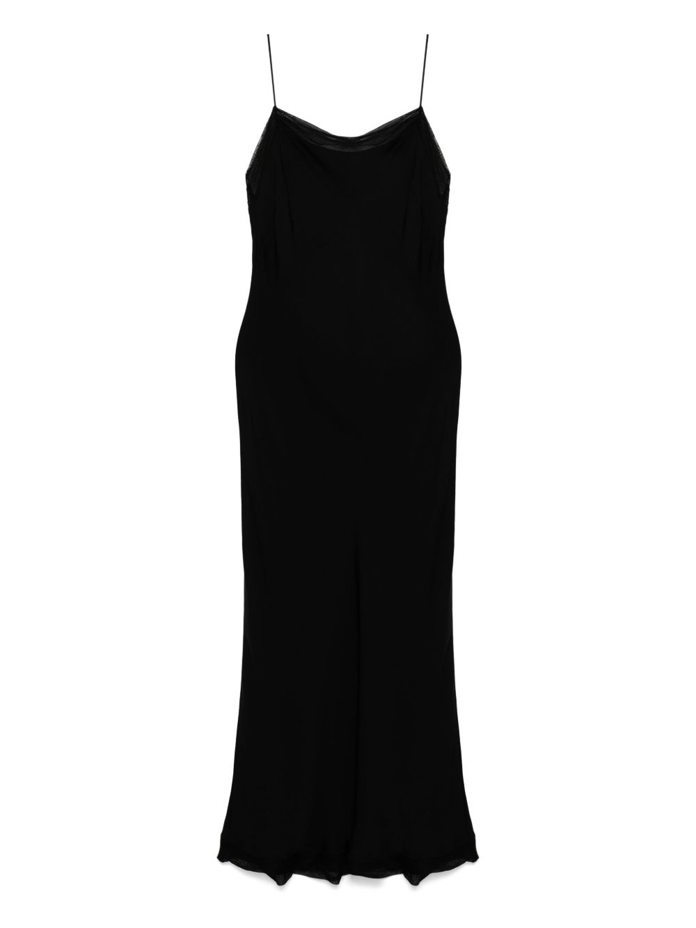 satin slip maxi dress Highlights - Black - Cowl neck - Spaghetti straps - Mesh detailing Imported Composition Outer: Silk 100% Lining: Viscose 100% SIZE & FIT Model measurements Height 5 ft 11 in(1.8 m) Bust/Chest 32.67 in(83 cm) Hips 36.22 in(92 cm) Waist 24.4 in(62 cm) FittingInformation Designed for a close fit throughout Made from a lightweight non-stretch fabric