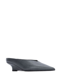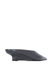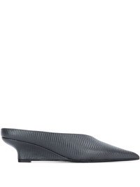 Lizard-effect leather wedge mules Dark gray
