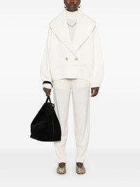 shawl-lapels cardigan Highlights - White - Wool blend - Ribbed knit - Double-breasted button fastening - Shawl lapels - Drop shoulder - Long sleeves - Straight hem Imported Composition RWS Wool 95%, Polyamide 5% SIZE & FIT Model measurements Height 5 ft 11 in(1.8 m) Bust/Chest 32.67 in(83 cm) Hips 36.22 in(92 cm) Waist 24.4 in(62 cm) FittingInformation Designed for an oversized fit, offering additional room throughout Made with a midweight knit, this piece offers some stretch