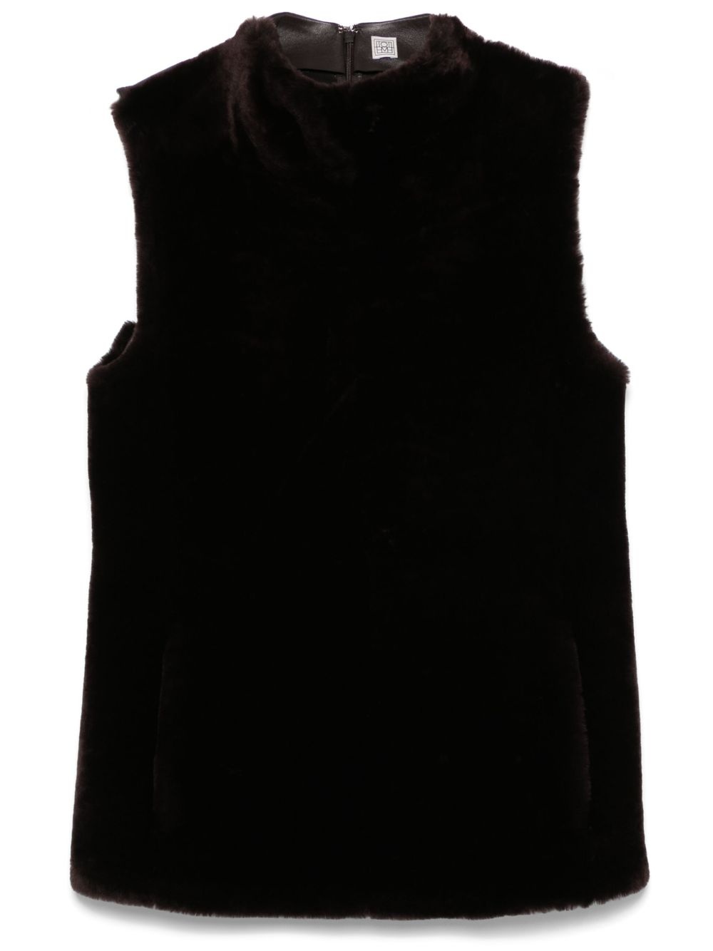 shearling-panel top Highlights - Cedar brown - Lambskin/shearling - Panelled design - Concealed rear hook and zip fastening - Mock neck - Sleeveless - Two side inset pockets - Straight hem Imported Composition Lining: Lambskin 100% Outer: Lamb Skin 100% SIZE & FIT Model measurements Height 5 ft 11 in(1.8 m) Bust/Chest 31.49 in(80 cm) Hips 36.61 in(93 cm) Waist 24.4 in(62 cm) FittingInformation Designed for a slim fit that sits just away from the body offering a close yet comfortable fit Made from a midweight fabric