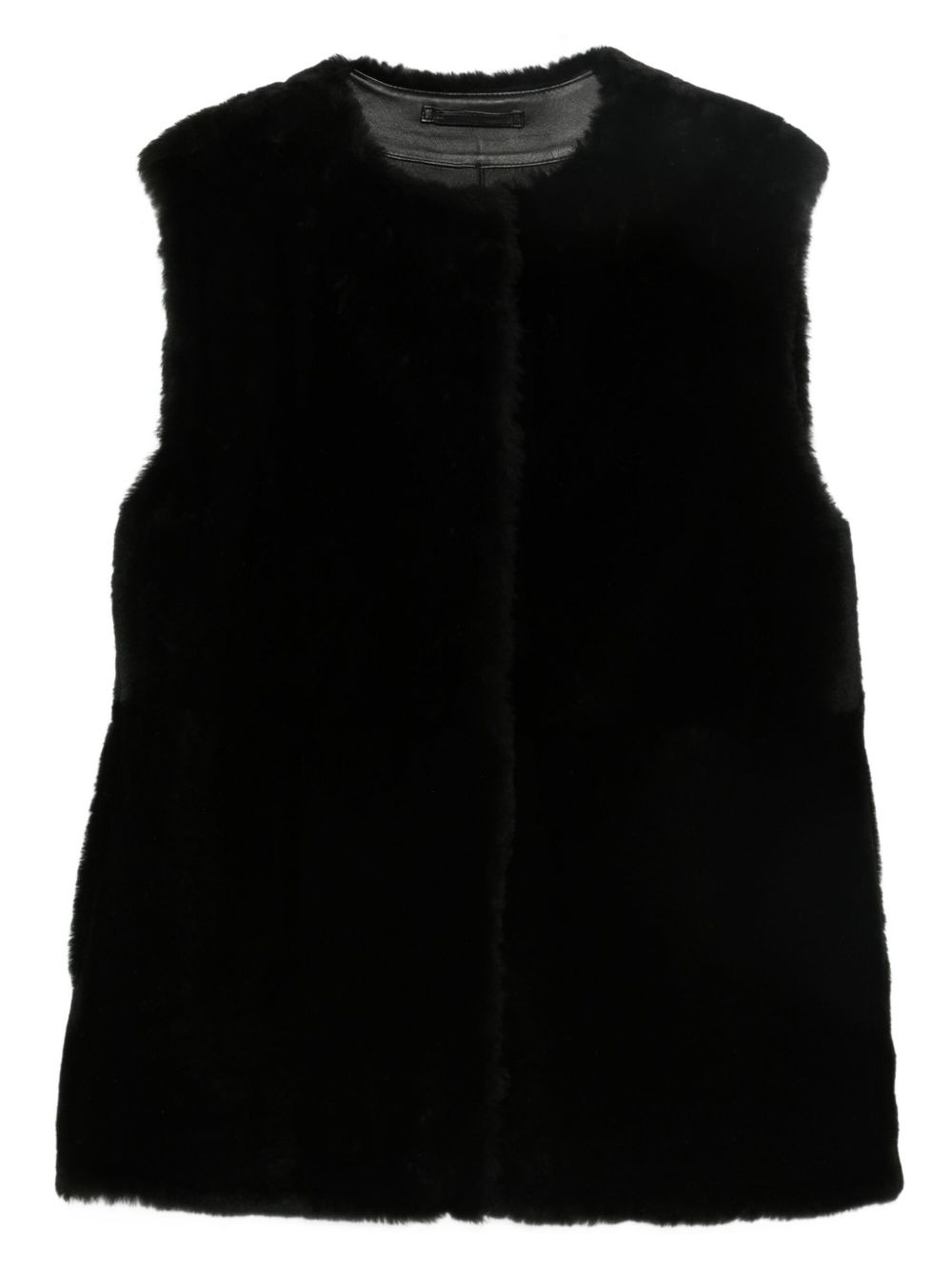 shearling vest Highlights - Black - Shearling texture - Sleeveless - Panelled design - Straight hem - Concealed fastening Imported Composition Lamb Fur 100% SIZE & FIT Model measurements Height 5 ft 8 in(1.73 m) Bust/Chest 29.92 in(76 cm) Hips 33.07 in(84 cm) Waist 23.22 in(59 cm) Washing instructions Read Manufacturer Guidelines