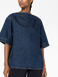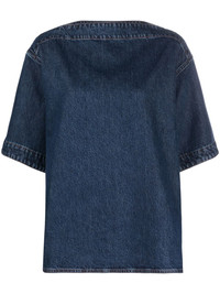 short-sleeve denim top Highlights - Indigo blue - Cotton - Denim - Scoop neck - Short sleeves - Straight hem Made in Italy Composition Cotton 100% Washing instructions Machine Wash