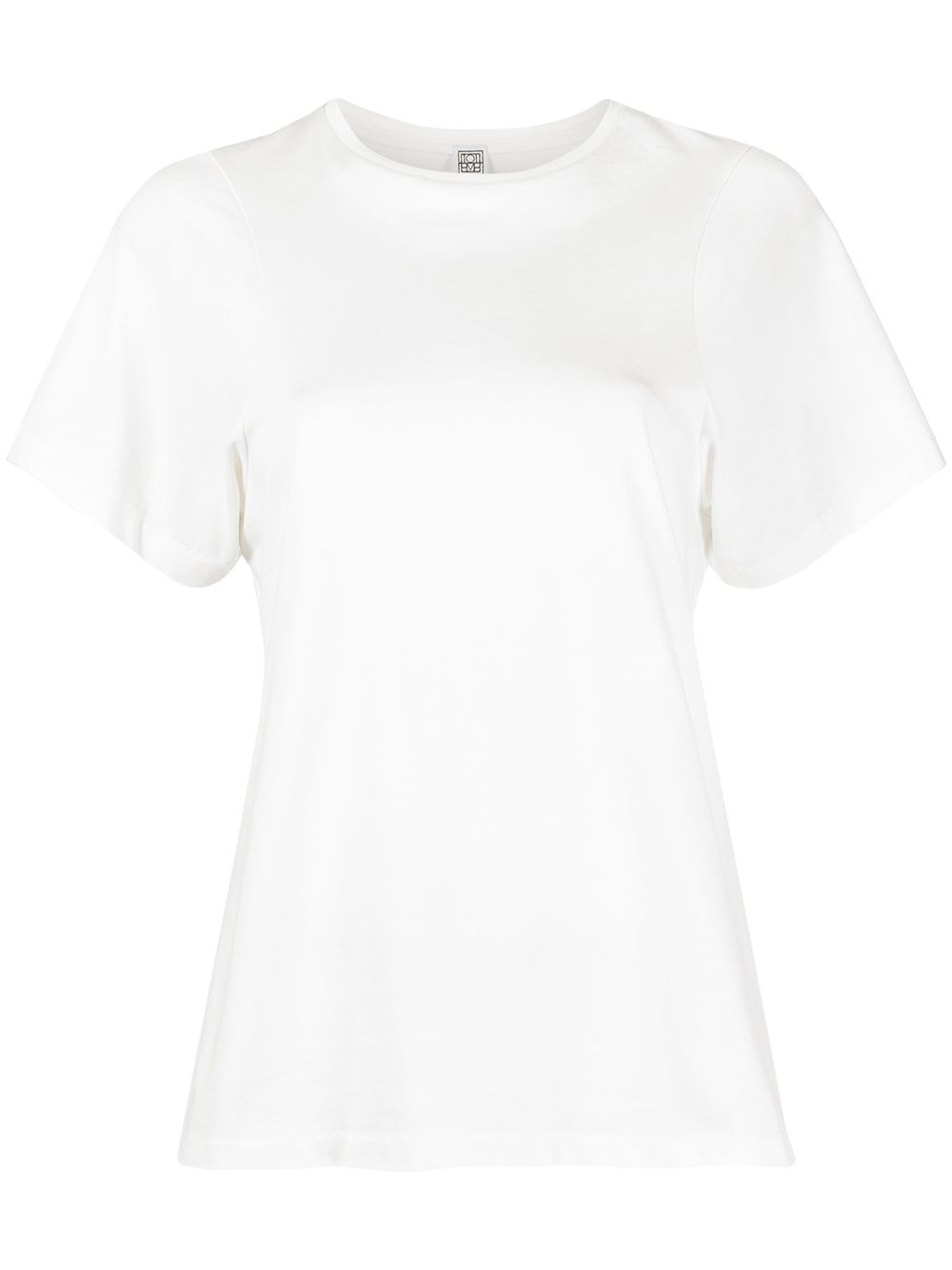 short sleeved T-shirt white cotton jersey knit crew neck short sleeves straight hem Imported Composition Organic Cotton 100% SIZE & FIT Model measurements Height 5 ft 10 in(1.77 m) Bust/Chest 32.28 in(82 cm) Hips 35.03 in(89 cm) Waist 25.19 in(64 cm) FittingInformation This piece fits true to size. We recommend you get your regular size Cut for a loose fit Made with a mid-weight fabric Measurement LENGTH 25.19 in(64 cm) WAIST 33.85 in(86 cm) BUST 33.07 in(84 cm) Shoulder Width 12.2 in(31 cm) SLEEVE LENGTH 7.87 in(20 cm) Washing instructions Machine Wash