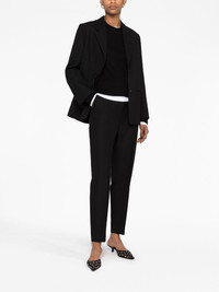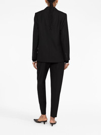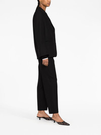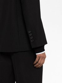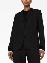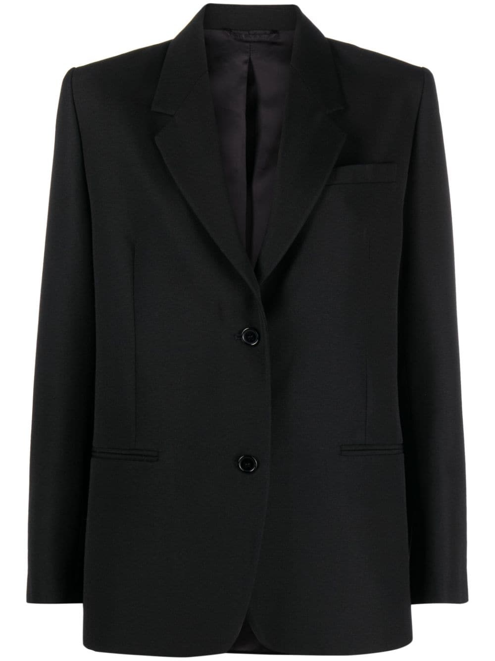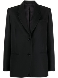 single-breasted blazer Scandinavian label TOTEME aims to deliver a 'well-curated wardrobe that transcends trends'. A good starting point, this blazer is spun from a wool blend in a classic single-breasted silhouette, arriving in a versatile shade of black. Highlights - Black - Wool blend - Notched lapels - Chest welt pocket - Front button fastening - Long sleeves - Two side welt pockets - Straight hem Imported Composition Outer: Polyester 55%, Wool 45% Lining: Viscose 50%, Cupro 50% SIZE & FIT Model measurements Height 5 ft 11 in(1.8 m) Bust/Chest 31.49 in(80 cm) Hips 35.82 in(91 cm) Waist 24.8 in(63 cm) Measurement SLEEVE LENGTH 24.8 in(63 cm) LENGTH 29.92 in(76 cm) FittingInformation Designed for a boxy fit, intended for a loose fit throughout The internal shoulder pads offer a structured shape Made from a midweight non-stretch fabric This piece fits true to size – take your usual size Washing instructions Dry Clean Only