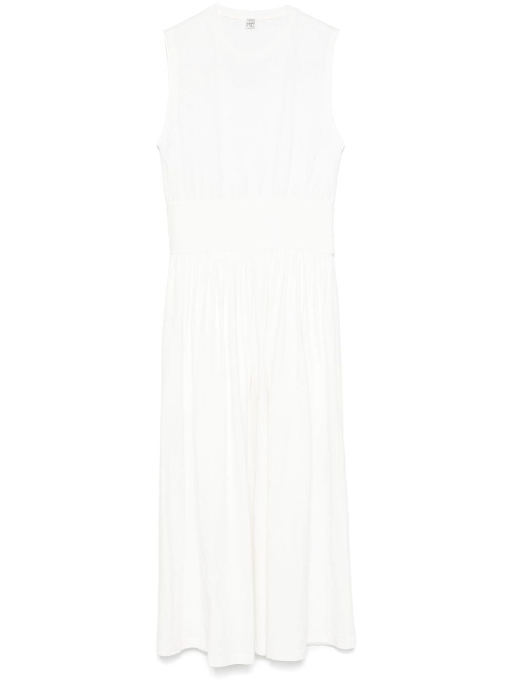 sleeveless cotton maxi dress Highlights - White - Crew neck - Two side slit pockets - Ruched detailing Imported Composition Organic Cotton 100% SIZE & FIT Model measurements Height 5 ft 10 in(1.78 m) Bust/Chest 33.85 in(86 cm) Hips 36.61 in(93 cm) Waist 26.77 in(68 cm) FittingInformation Designed for a close fit at the chest and waist with a loose fit at the hip Made from a midweight non-stretch fabric, this piece offers minimal elasticity when worn
