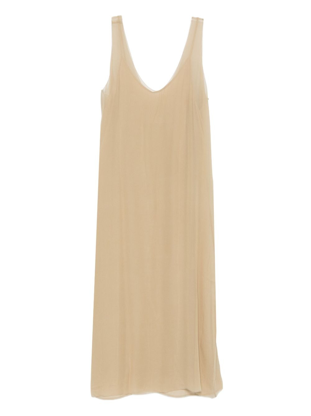slip midi dress Highlights - Light beige - Sheer finish - V-neck - Sleeveless - Mid length Imported Composition Silk 100% SIZE & FIT Model measurements Height 5 ft 10 in(1.77 m) Bust/Chest 32.28 in(82 cm) Hips 35.03 in(89 cm) Waist 25.19 in(64 cm) Washing instructions Read Manufacturer Guidelines
