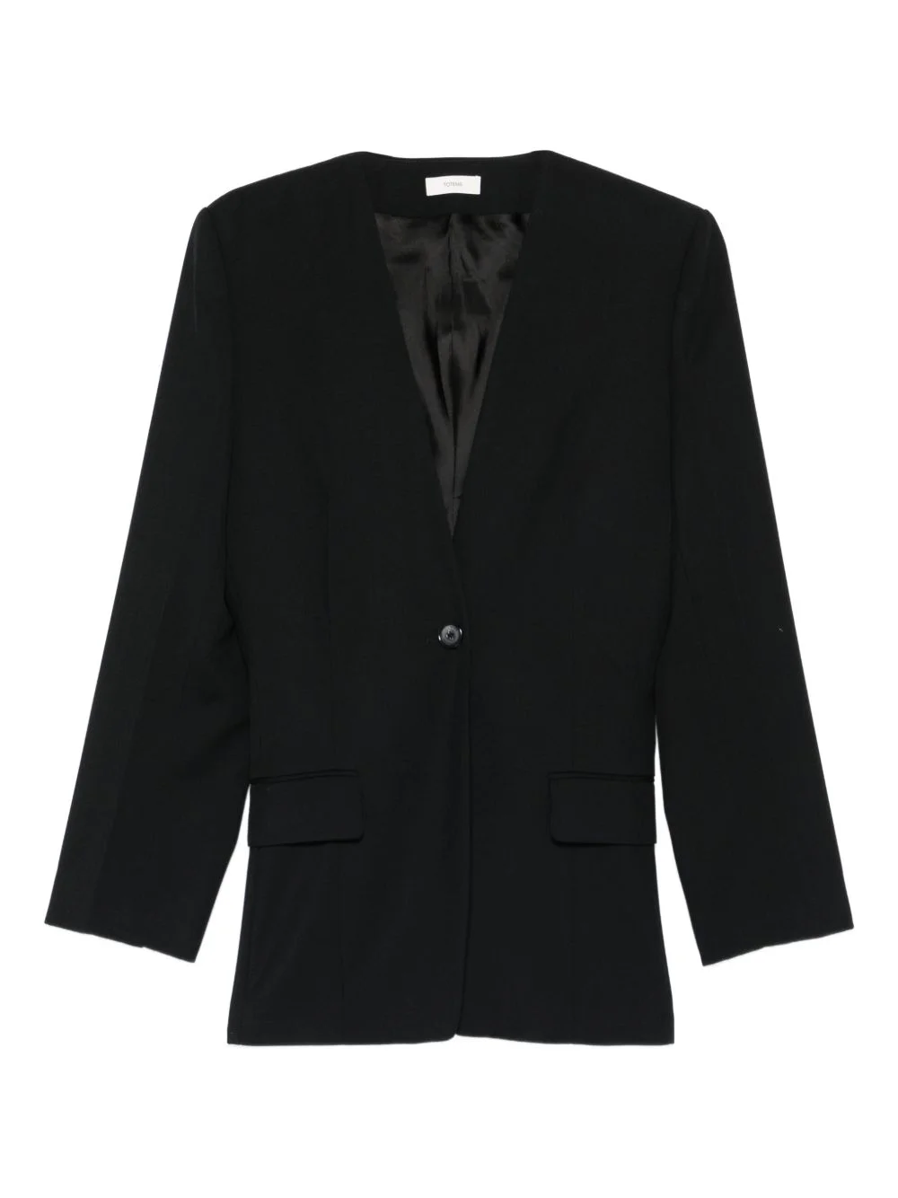 Slouch single-button blazer Highlights - Black - Single button closure - Front flap pockets - V-neck - Long sleeves - Shoulder pads Imported Composition Outer: Polyester 55%, RWS Wool 45% Lining: Viscose 100% SIZE & FIT Model measurements Height 5 ft 10 in(1.78 m) Bust/Chest 31.49 in(80 cm) Hips 37 in(94 cm) Waist 23.62 in(60 cm) Washing instructions Dry Clean Only