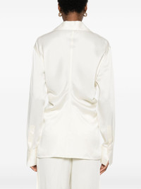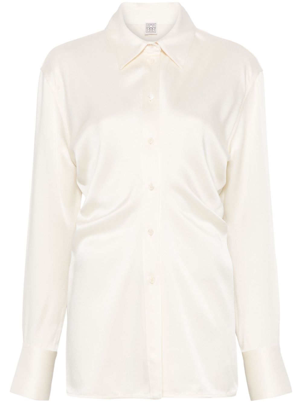 slouch-waist shirt Highlights - Slouch body - Ivory white - Satin weave - Slouch waist - Spread collar - Long sleeves - Buttoned cuffs - Straight hem Imported Composition Viscose 56%, Acetate 44% SIZE & FIT Model measurements Height 5 ft 11 in(1.8 m) Bust/Chest 31.49 in(80 cm) Hips 36.61 in(93 cm) Waist 24.4 in(62 cm) FittingInformation Designed for a slim fit that sits just away from the body offering a close yet comfortable fit Made from a midweight non-stretch fabric