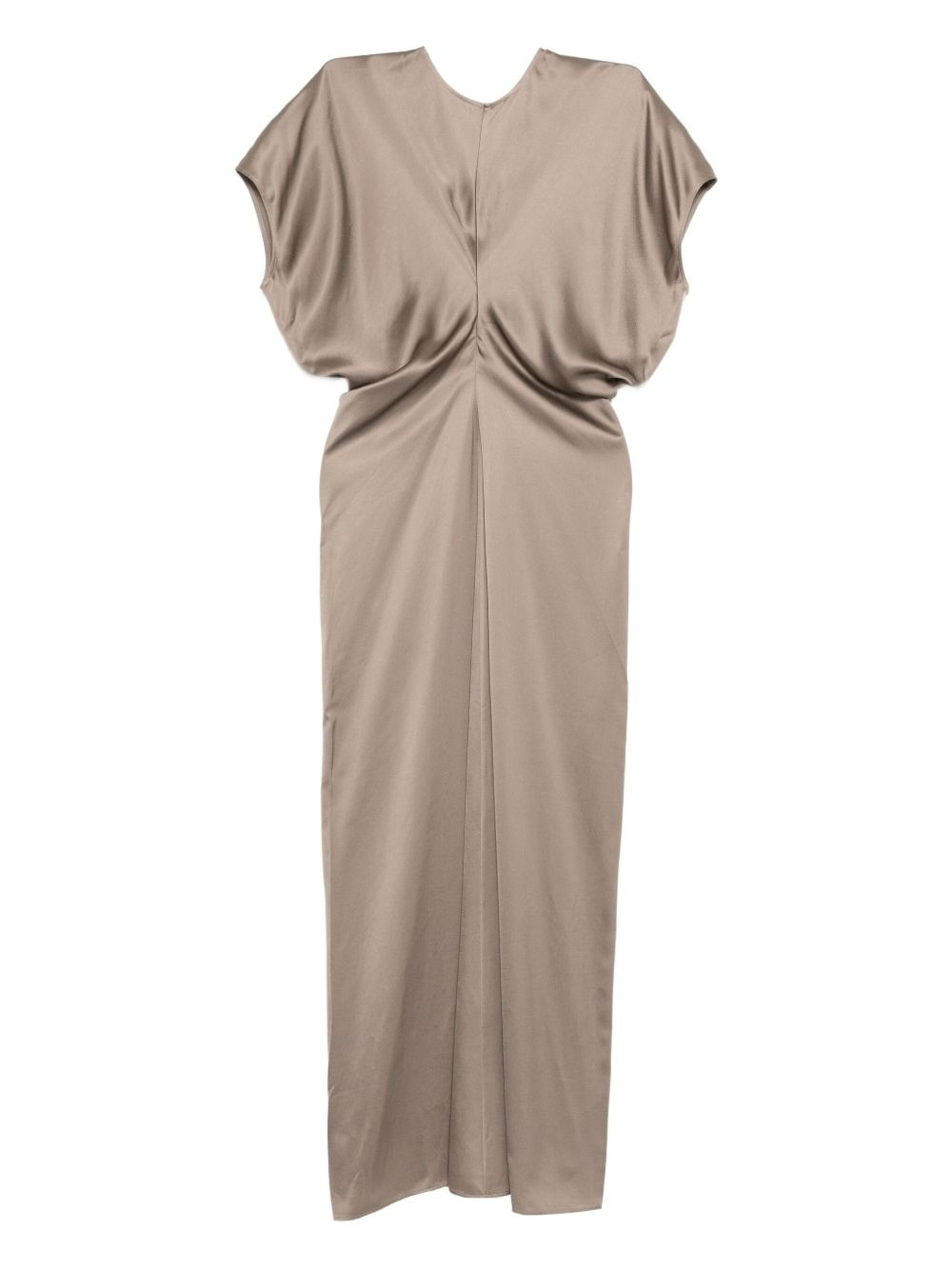 slouched-waist dress Highlights - Taupe grey - Concealed rear hook and zip fastening - Round neck - Cap sleeves Imported Composition Viscose 100% SIZE & FIT Model measurements Height 5 ft 11 in(1.8 m) Bust/Chest 30.7 in(78 cm) Hips 36.22 in(92 cm) Waist 25.59 in(65 cm) FittingInformation Designed for a loose fit at the chest with a close fit over the waist and hips Made from a lightweight non-stretch fabric Measurement HIPS 35.43 in(90 cm) LENGTH 52.75 in(134 cm) WAIST 27.55 in(70 cm) BUST 47.24 in(120 cm) Shoulder Width 19.68 in(50 cm)
