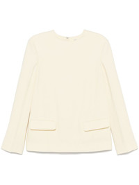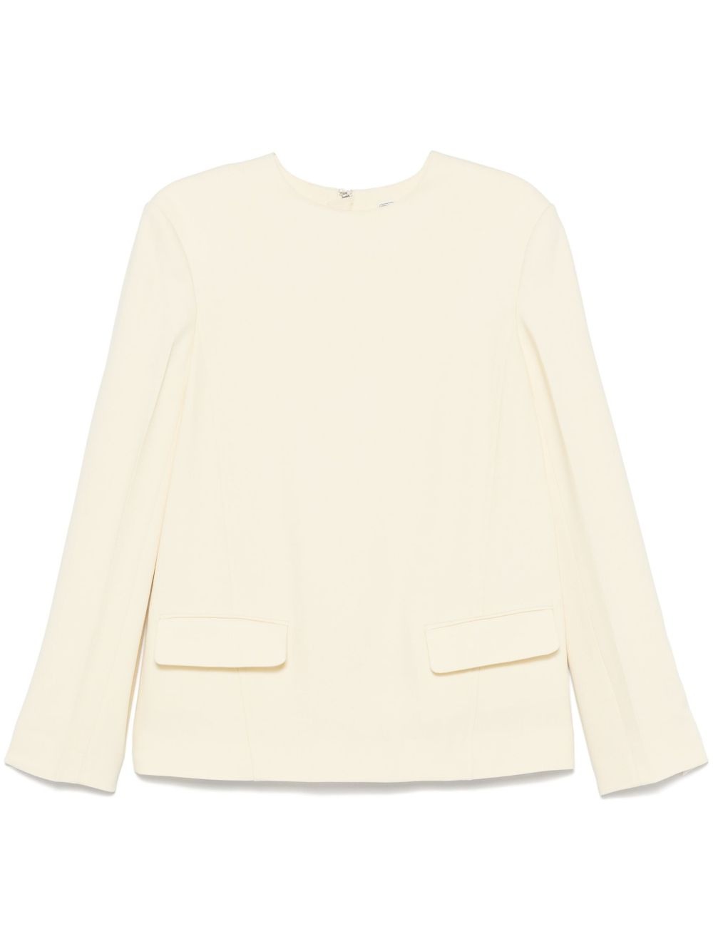 slub-texture blouse Highlights - Light beige - Concealed rear zip fastening - Shoulder pads - Buttoned cuffs - Two front flap pockets Imported Composition Outer: Viscose 77%, Virgin Wool 23% Lining: Viscose 100% SIZE & FIT Model measurements Height 5 ft 11 in(1.8 m) Bust/Chest 31.49 in(80 cm) Hips 35.82 in(91 cm) Waist 24.8 in(63 cm) FittingInformation Designed to be unstructured, offering a loose fit throughout Made from a midweight fabric