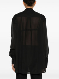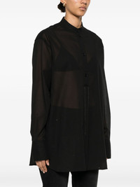 stand-up collar blouse Highlights - Black - Front button placket - Buttoned cuffs - Box-pleat detail - Strap detailing Imported Composition Organic Cotton 100% SIZE & FIT Model measurements Height 5 ft 10 in(1.77 m) Bust/Chest 31.88 in(81 cm) Hips 36.22 in(92 cm) Waist 24.01 in(61 cm) FittingInformation Designed to be unstructured, offering a loose fit throughout Made from a lightweight non-stretch fabric