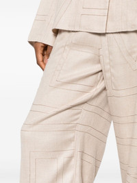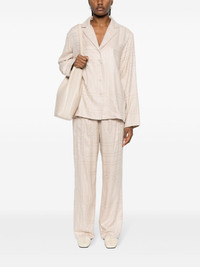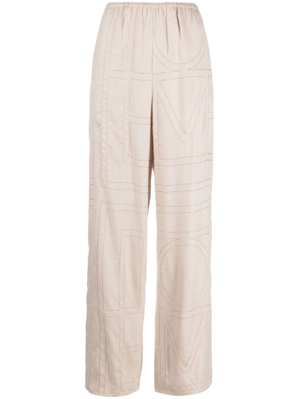 Monogram flannel pajama bottoms TOTEME's signature monogram is applied to these light beige trousers in a stitched pattern that lends the pair a geometric-inspired appeal. They're spun from lightweight modal that contributes to their flowy relaxed silhouette. Highlights - Beige/brown - Modal - Decorative stitching - Twill weave - Mid-rise - Elasticated waistband - Two side inset pockets - Tapered leg - Unlined Imported Composition Modal 100% SIZE & FIT Model measurements Height 5 ft 10 in(1.77 m) Bust/Chest 34.64 in(88 cm) Hips 35.43 in(90 cm) Waist 24.8 in(63 cm) Measurement FRONT RISE 12.79 in(32.5 cm) HIPS 36.22 in(92 cm) WAIST 24.4 in(62 cm) Washing instructions Hand Wash