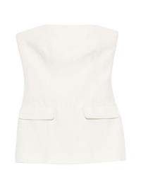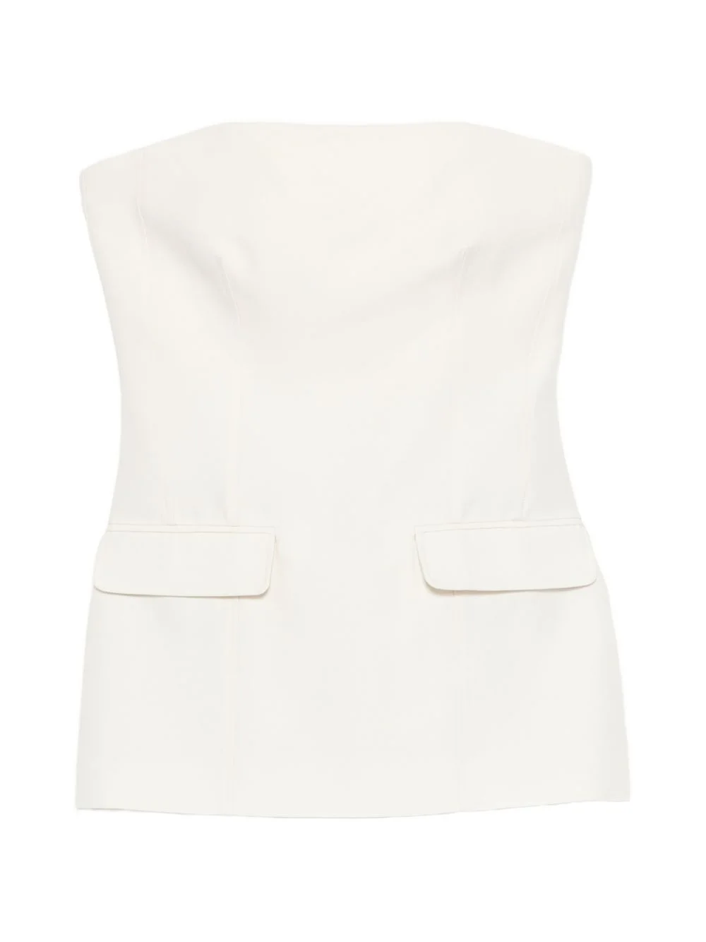 strapless pocket crepe top Highlights - Off-white - Strapless - Crepe texture - Two pockets - Straight hem Imported Composition Lining: Viscose 100% Outer: Polyamide 85%, Wool 81%, Acetate 80%, Polyester 20%, Silk 19%, Elastane 15% Washing instructions Dry Clean Only