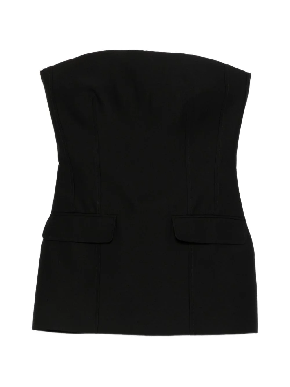 strapless pocket top Highlights - Black - Strapless - Two front pockets - Crepe texture Imported Composition Lining: Viscose 100% Outer: Polyamide 85%, Wool 81%, Acetate 80%, Polyester 20%, Silk 18%, Elastane 15% Washing instructions Dry Clean Only