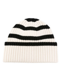 Signature Stripe beanie Known for its minimalist, timeless aesthetic, TOTEME proposes curated everyday staples in a range of clothing and accessories. A prime example, this ivory white and blakc wool beanie is defined by its simplicity, boasting a ribbed-knit construction with a classic horizontal stripe pattern. Highlights - Ivory white/black - Wool - Ribbed knit - Horizontal stripe pattern - Turn-up brim - Round crown Imported Composition Wool 100% Washing instructions Hand Wash