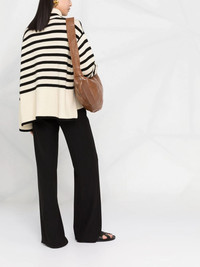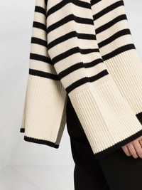 striped roll neck jumper sand-brown/navy-blue cotton-wool blend two-tone design horizontal stripe pattern roll neck long sleeves Imported Composition Wool 56%, Cotton 44% SIZE & FIT Model measurements Height 5 ft 10 in(1.78 m) Bust/Chest 33.07 in(84 cm) Hips 33.07 in(84 cm) Waist 24.4 in(62 cm) Measurement SLEEVE LENGTH 20.47 in(52 cm) LENGTH 22.83 in(58 cm) BUST 54.33 in(138 cm) Washing instructions Hand Wash