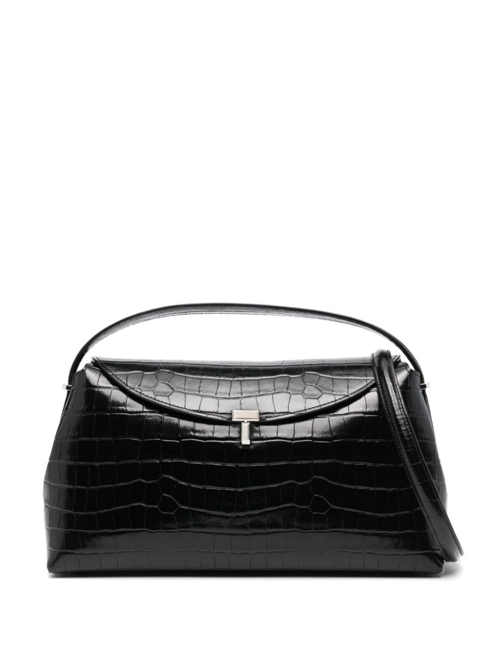 T-lock leather top handle bag Highlights - Black - Calf leather - Embossed crocodile effect - Single top handle - Adjustable detachable shoulder strap - Metal feet - Main compartment - Internal logo stamp - Internal card slots - Silver-tone hardware - Front flap closure - T-lock fastening Made in Italy Composition Outer: Calf Leather 100% SIZE & FIT Model measurements Height 5 ft 10 in(1.77 m) Bust/Chest 32.28 in(82 cm) Hips 35.03 in(89 cm) Waist 25.19 in(64 cm) Measurement DEPTH 4.72 in(12 cm) HEIGHT 6.69 in(17 cm) STRAP 17.71 in(45 cm) WIDTH 13.77 in(35 cm)