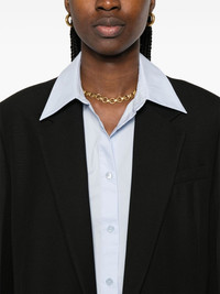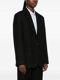 tailored blazer Highlights - Black - Front button fastening - Buttoned cuffs - Chest welt pocket - American rear vent Imported Composition Outer: Polyester 55%, RWS Wool 45% Lining: Viscose 100% SIZE & FIT Model measurements Height 5 ft 11 in(1.8 m) Bust/Chest 32.67 in(83 cm) Hips 36.22 in(92 cm) Waist 24.4 in(62 cm) Measurement LENGTH 29.52 in(75 cm) WAIST 37.79 in(96 cm) BUST 37 in(94 cm) Shoulder Width 16.53 in(42 cm) FittingInformation Designed to be unstructured, offering a loose fit throughout The internal shoulder pads offer a structured shape Made from a midweight non-stretch fabric