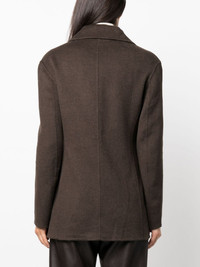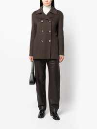 tailored double-breasted jacket Capturing Toteme's minimalistic style, this elegant brown coat is cut with clean lines and secured with a classic double-breasted button fastening. Highlights - Brown - Notched lapels - Double-breasted button fastening - Long sleeves - Straight hem Imported Composition Fabric 100% SIZE & FIT Model measurements Height 5 ft 11 in(1.8 m) Bust/Chest 33.07 in(84 cm) Hips 37.4 in(95 cm) Waist 25.19 in(64 cm) FittingInformation Designed for a slim fit that sits just away from the body offering a close yet comfortable fit The dart stitching adds structure and a closer fit in the torso of this piece Made from a midweight fabric This piece fits true to size – take your usual size Washing instructions Dry Clean Only