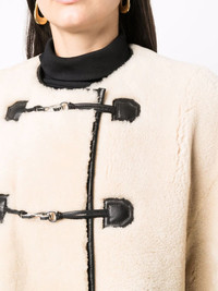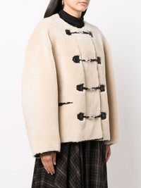 Teddy shearling jacket Part of TOTEME's AW22 collection, this beige Teddy shearling jacket offers a comfy yet sleek look. The piece features a straight, relaxed cut enhanced with a lobster fastening on the front. Imported Composition Lining: Lamb Skin 100% Outer: Sheep Skin/Shearling 100% SIZE & FIT Model measurements Height 5 ft 11 in(1.8 m) Bust/Chest 33.07 in(84 cm) Hips 37.4 in(95 cm) Waist 25.19 in(64 cm) FittingInformation This piece fits true to size. We recommend you get your regular size Cut for a loose fit Made with a mid-weight non-stretch fabric Washing instructions Dry Clean Only