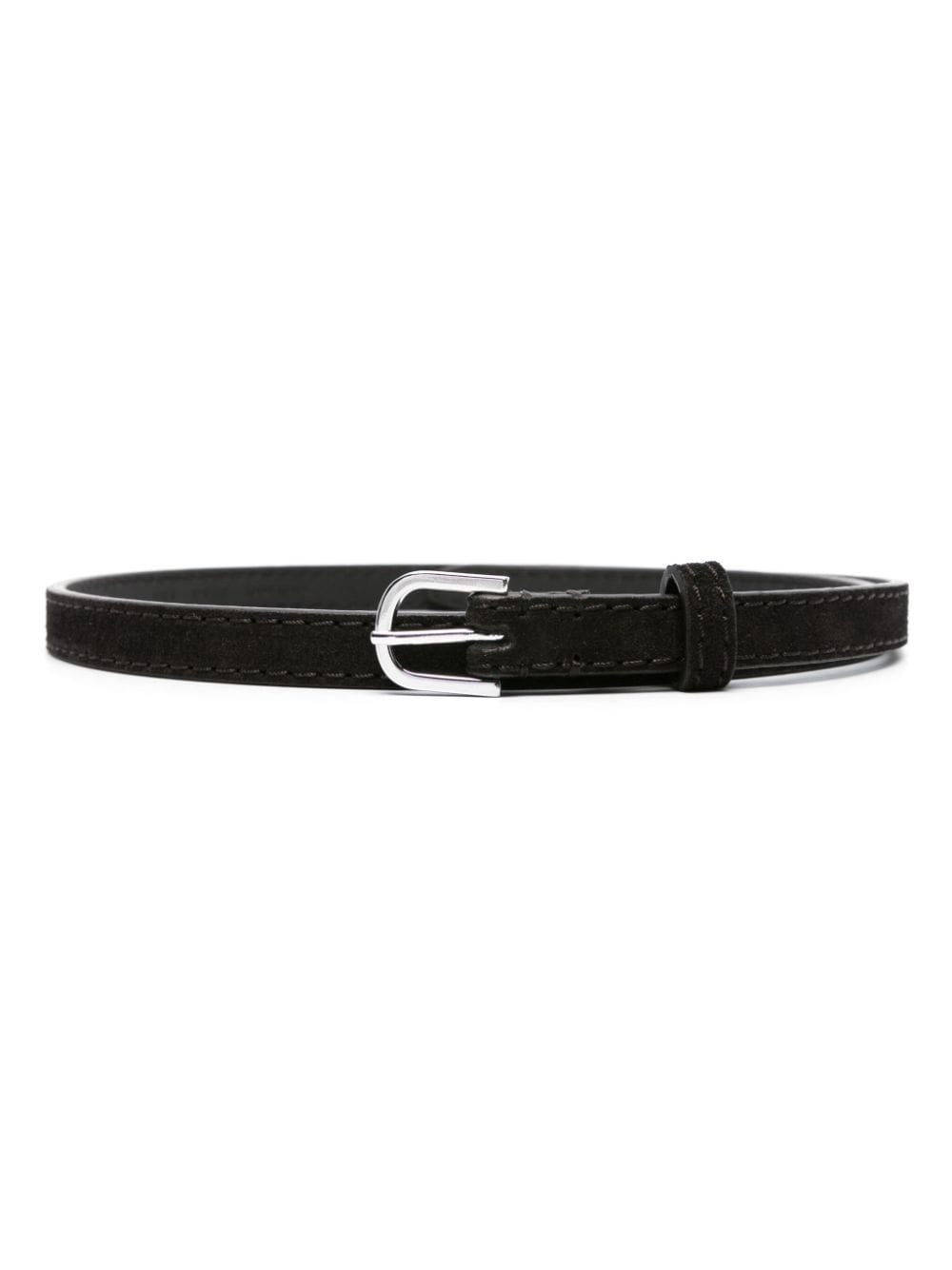 Thin suede belt TOTEME’s Thin belt is named after its slender 15mm width. It’s crafted from espresso-brown suede with topstitching and a polished silver-tone buckle. Highlights - Espresso brown - Calf suede - Logo-engraved silver-tone hardware - Buckle fastening - This piece comes complete with a protective dust bag. Made in Italy Composition Calf Suede 100% SIZE & FIT Measurement Minimum Length 29.52 in(75 cm) TOTAL LENGTH 33.46 in(85 cm) WIDTH 0.59 in(1.5 cm)