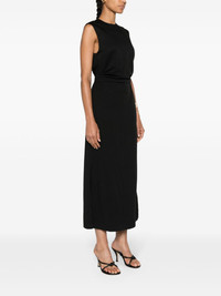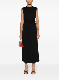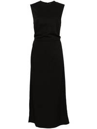 tie-waist sleeveless midi dress Highlights - Black - Round neck - Concealed rear zip fastening - Sleeveless - Tied waist - Column silhouette - Straight hem - Mid-length Imported Composition Viscose 50%, Linen/Flax 50% SIZE & FIT Model measurements Height 5 ft 10 in(1.78 m) Bust/Chest 33.07 in(84 cm) Hips 36.61 in(93 cm) Waist 24.8 in(63 cm) Measurement HIPS 43.3 in(110 cm) LENGTH 52.36 in(133 cm) WAIST 37 in(94 cm) FittingInformation Designed for a close fit at the chest and waist with a loose fit at the hip The adjustable tie waist gives a more adaptable and personalised fit Made from a lightweight non-stretch fabric This piece fits true to size – take your usual size