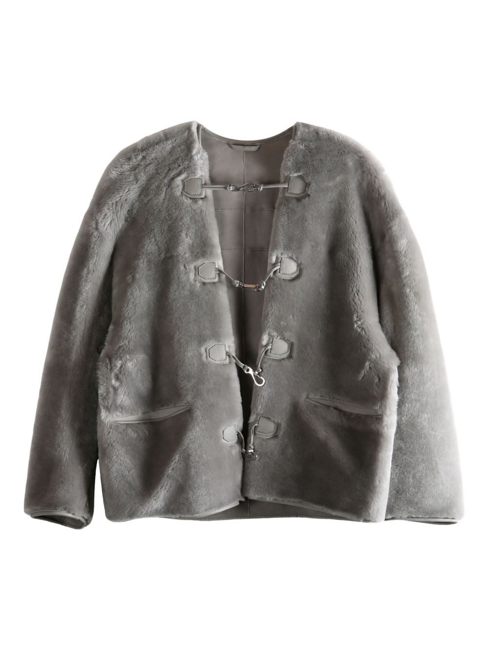toggle-fastening shearling jacket Highlights - Grey - Shearling - Toggle fastening - Long sleeves Imported Composition Lambskin 100%, Lamb Shearling 100%
