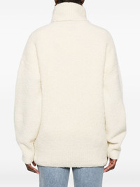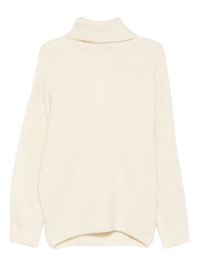 turtleneck sweater Highlights - Milk white - Boucle texture - Turtleneck - Long sleeves - Ribbed cuffs - Ribbed hem Imported Composition Alpaca 44%, Wool 43%, Polyester 11%, Elastane 2% SIZE & FIT Model measurements Height 5 ft 10 in(1.77 m) Bust/Chest 32.28 in(82 cm) Hips 35.03 in(89 cm) Waist 25.19 in(64 cm) Washing instructions Read Manufacturer Guidelines