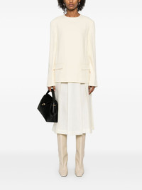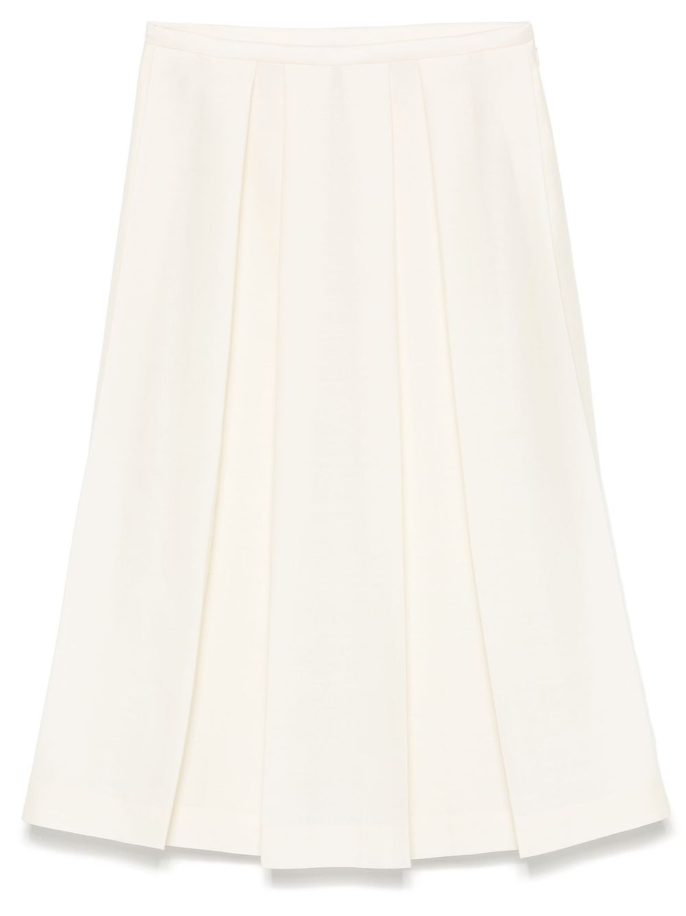 twinflower midi skirt Highlights - White - Concealed side hook and zip fastening - Box-pleat design - Flared Imported Composition Wool 90%, Silk 10% SIZE & FIT Model measurements Height 5 ft 11 in(1.8 m) Bust/Chest 31.49 in(80 cm) Hips 35.82 in(91 cm) Waist 24.8 in(63 cm) FittingInformation This midi-length skirt is intended to be worn just below the waist Made from a midweight non-stretch fabric