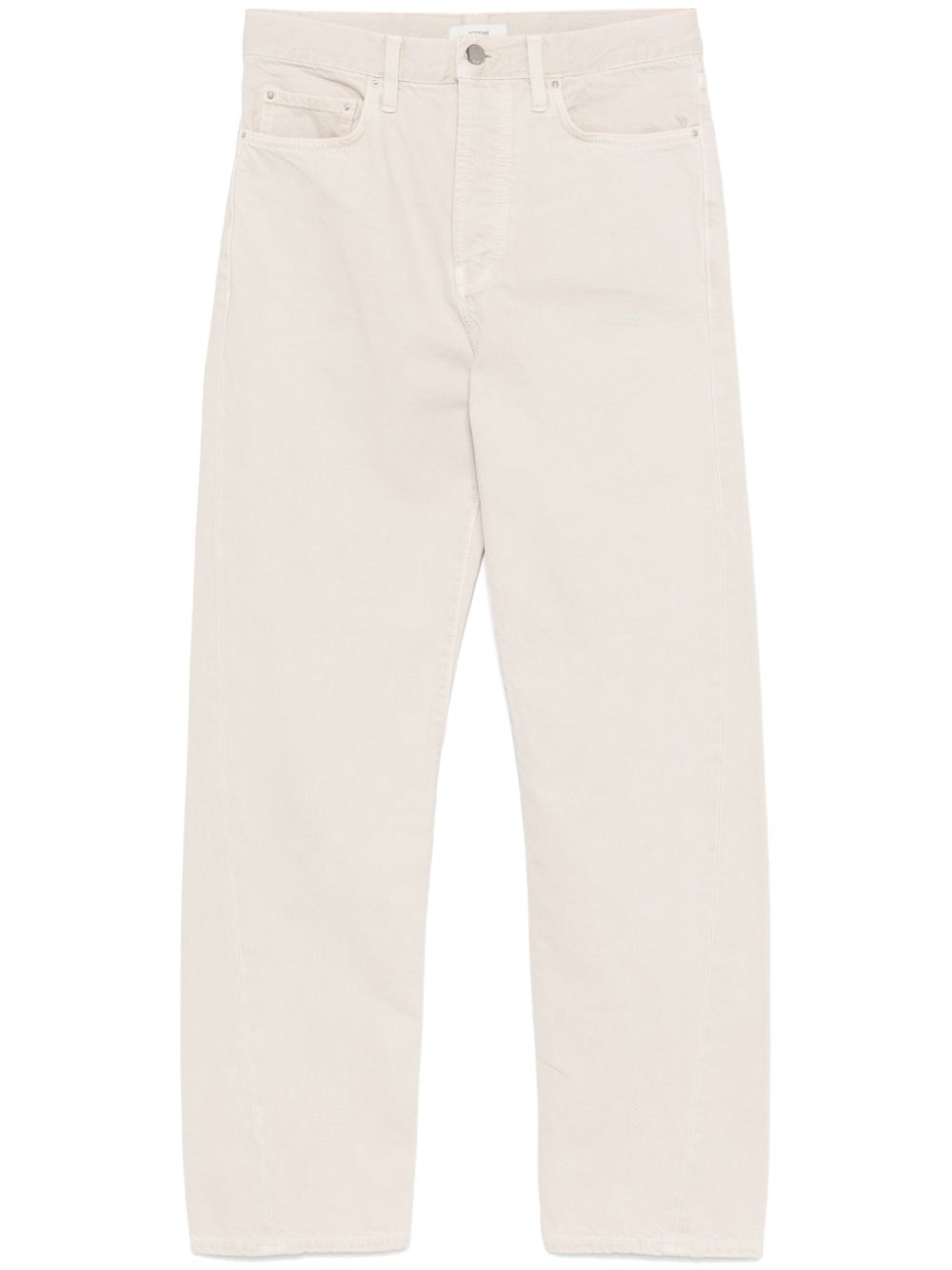 twisted-seam jeans Highlights - Light beige - Front button fastening - Belt loops Imported Composition Organic Cotton 100% SIZE & FIT Model measurements Height 5 ft 11 in(1.8 m) Bust/Chest 31.49 in(80 cm) Hips 35.82 in(91 cm) Waist 24.8 in(63 cm) Measurement FRONT RISE 12.59 in(32 cm) HIPS 39.37 in(100 cm) WAIST 29.92 in(76 cm) FittingInformation Designed for a straight-leg fit, these jeans allow for a close fit at the waist and an unrestricted and comfortable fit over the leg Sturdy and hard-wearing, this denim piece offers no stretch