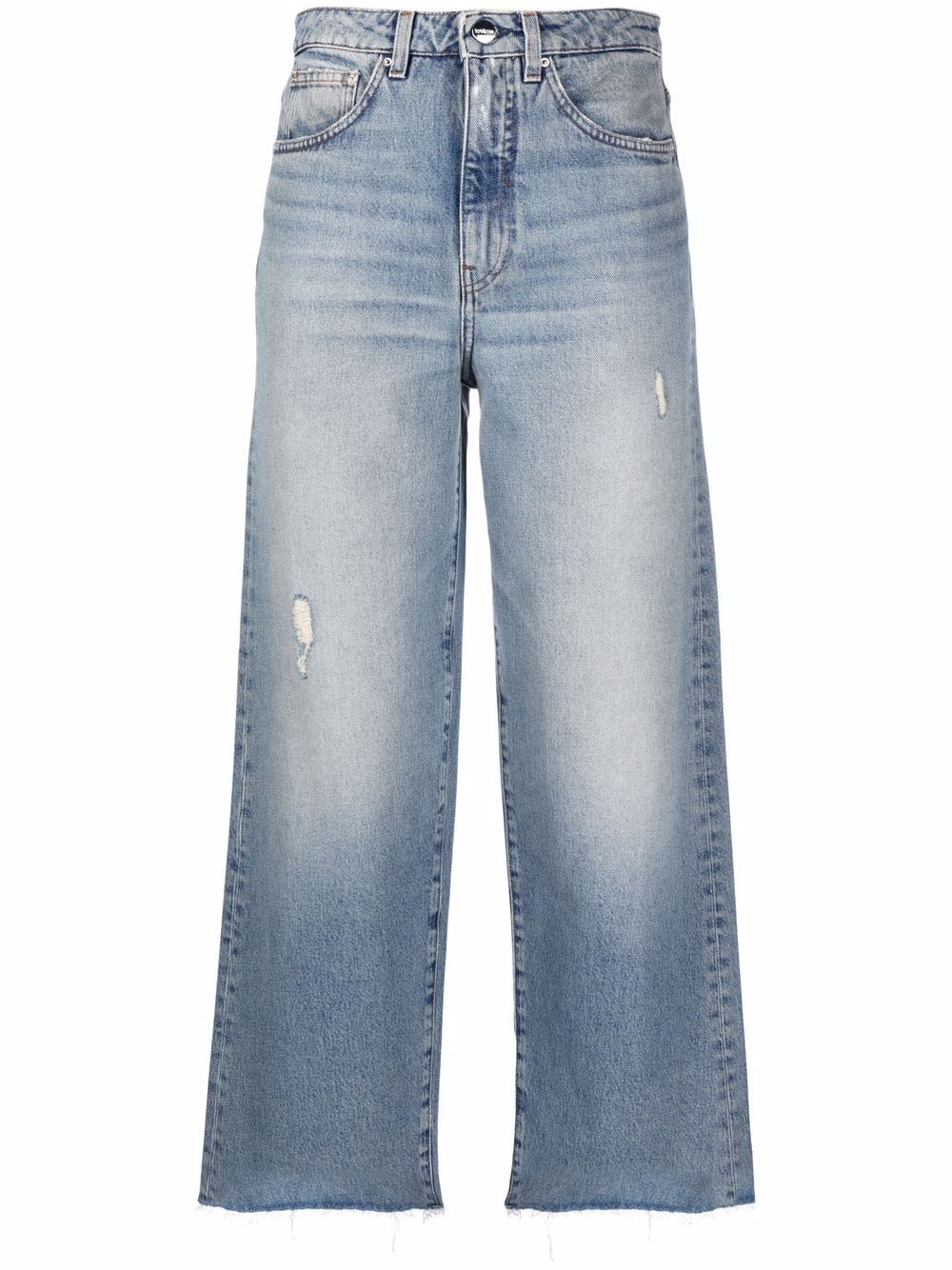 wide-leg organic jeans Highlights - Light blue - Organic cotton - Wide leg - Distressed finish - Logo patch to the back - High waist - Belt loops - Concealed fly and button fastening - Classic five pockets Made in Italy Composition Organic Cotton 100% SIZE & FIT Model measurements Height 5 ft 10 in(1.77 m) Bust/Chest 30.7 in(78 cm) Hips 35.43 in(90 cm) Waist 23.62 in(60 cm) FittingInformation This piece fits true to size. We recommend you get your regular size Designed to be fitted at the waist and hips, loose over the leg Made with a mid-weight non-stretch fabric Washing instructions Machine Wash