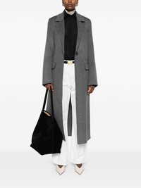 wool coat Highlights - Medium grey - Wool - Brushed effect - Melange effect - Front button fastening - Notched lapels - Shoulder pads - Long sleeves - Buttoned cuffs - Two side flap pockets - Central rear vent - Partial lining - Straight hem - Mid-length Made in United States Composition Outer: RWS Wool 100% Lining: Viscose 100% SIZE & FIT Model measurements Height 5 ft 11 in(1.8 m) Bust/Chest 31.49 in(80 cm) Hips 36.61 in(93 cm) Waist 24.4 in(62 cm) FittingInformation Designed to be unstructured, offering a loose fit throughout The vented hem offers movement at the rear Made from a midweight non-stretch fabric