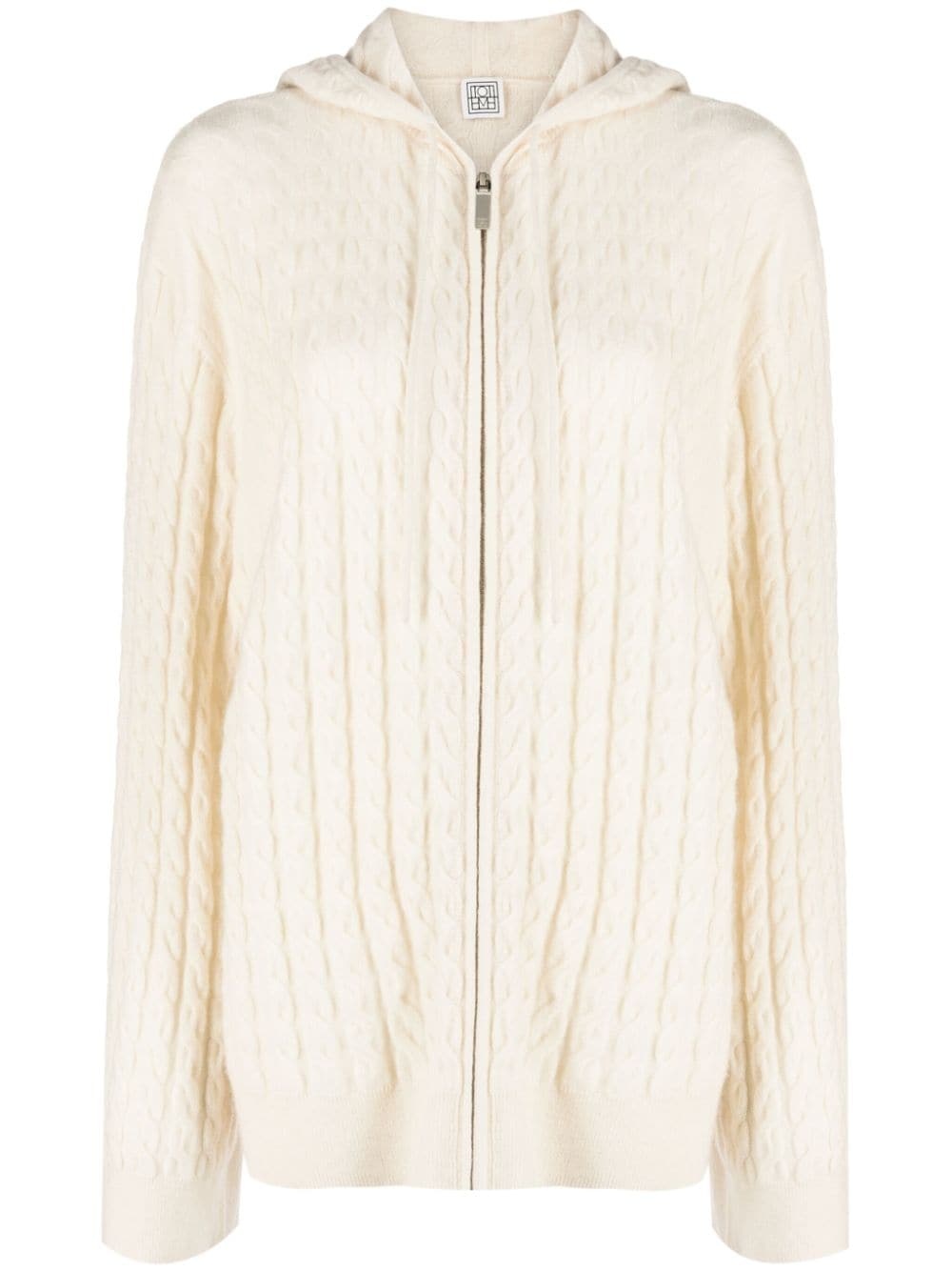 cable-knit zip-up hoodie Highlights - Cream white - Wool - Cable knit - Drawstring hood - Front zip fastening - Long sleeves - Straight hem Imported Composition Outer: Wool 70%, Cashmere 30% SIZE & FIT Model measurements Height 5 ft 11 in(1.8 m) Bust/Chest 31.49 in(80 cm) Hips 36.22 in(92 cm) Waist 25.59 in(65 cm) FittingInformation Designed for an oversized fit, offering additional room throughout Made with a midweight knit, this piece offers some stretch This piece fits true to size – take your usual size Washing instructions Dry Clean Only