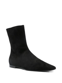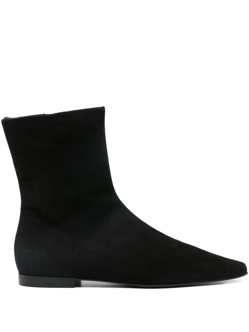zipped suede pointed-toe boots Highlights - Black - Suede - Side zip fastening - Pointed toe - Flat sole Imported Composition Lining: Calf Leather 100% Sole: Rubber 100%, Calf Leather 100% Outer: Calf Suede 100%