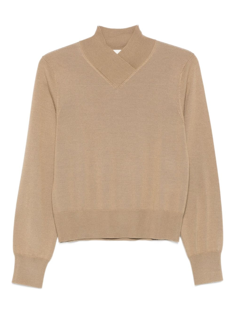 Detta sweater Highlights - Camel brown - High neck - Long sleeves - Ribbed trim Imported Composition Merino 75%, Silk 25% SIZE & FIT Model measurements Height 5 ft 10 in(1.78 m) Bust/Chest 33.46 in(85 cm) Hips 36.22 in(92 cm) Waist 23.22 in(59 cm) Washing instructions Hand Wash
