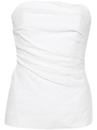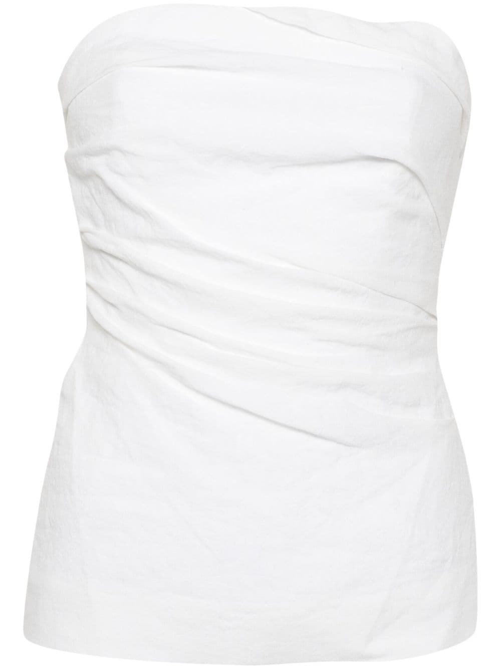 Izel linen bandeau top Highlights - Cream white - Linen/flax - Gathered detailing - Bandeau style - Strapless - Flared hem - Full lining - Concealed rear zip fastening Imported Composition Outer: Linen/Flax 100% Lining: Polyester 65%, Cotton 35% SIZE & FIT Model measurements Height 5 ft 10 in(1.77 m) Bust/Chest 29.92 in(76 cm) Hips 34.25 in(87 cm) Waist 23.62 in(60 cm) Measurement CHEST 28.34 in(72 cm) LENGTH 18.11 in(46 cm) WAIST 23.62 in(60 cm) FittingInformation Designed for a slim fit that sits just away from the body offering a close yet comfortable fit Made from a midweight non-stretch fabric This piece fits true to size – take your usual size
