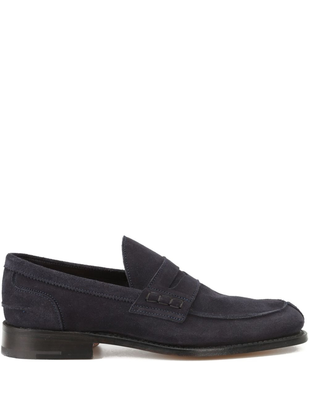 penny-slot suede loafers Highlights - Navy blue - Suede leather - Penny strap - Leather sole - Stitched detailing Made in United Kingdom Composition Outer: Suede 100% Sole: Rubber 100% Lining: Calf Leather 100%
