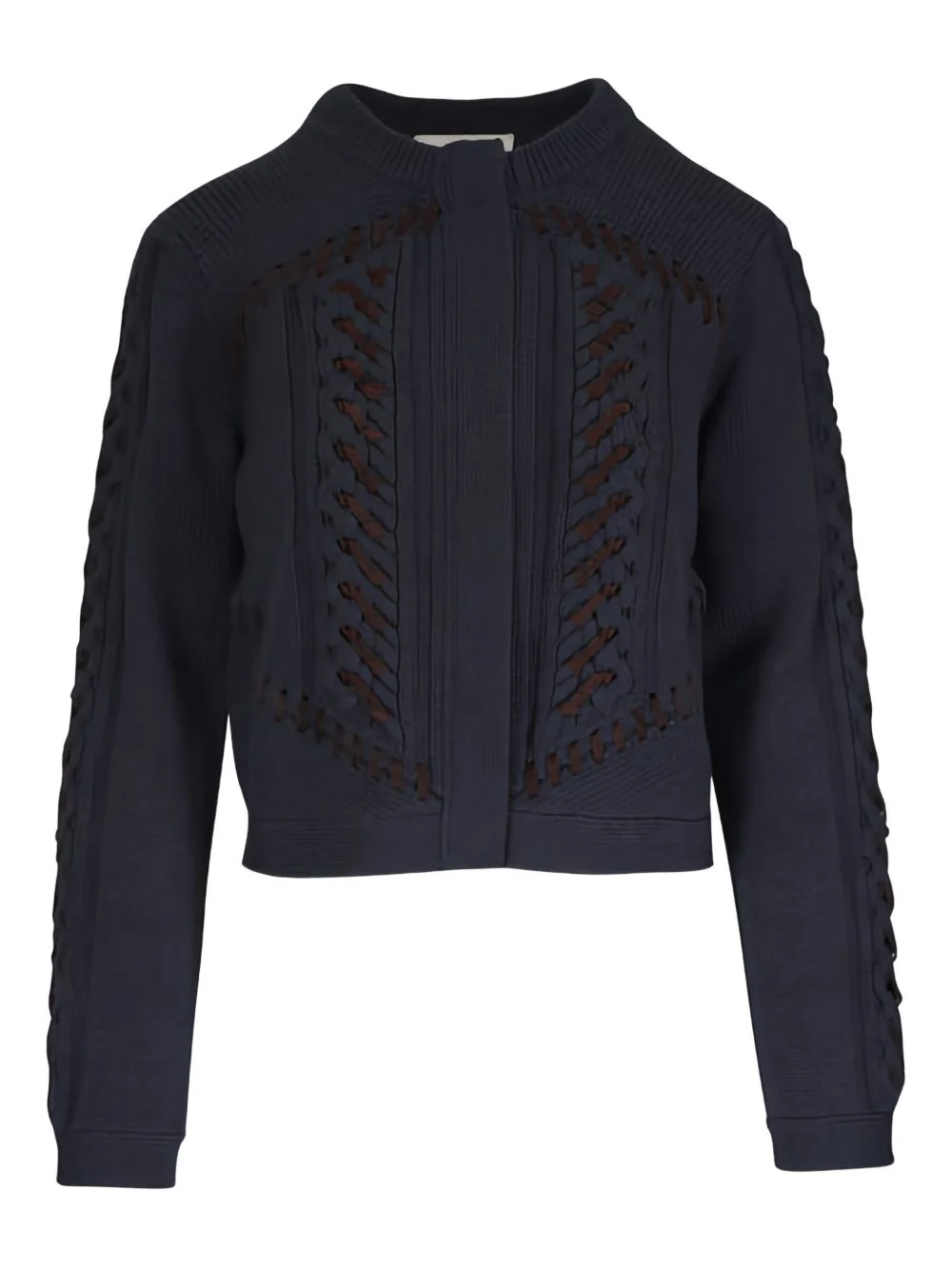 cable-knit panelled cardigan Highlights - Grey - Cable knit - Panelled - Long sleeves - Round neck - Ribbed hem Imported Composition Merino 100%, Lambskin 100% Washing instructions Specialist Cleaning
