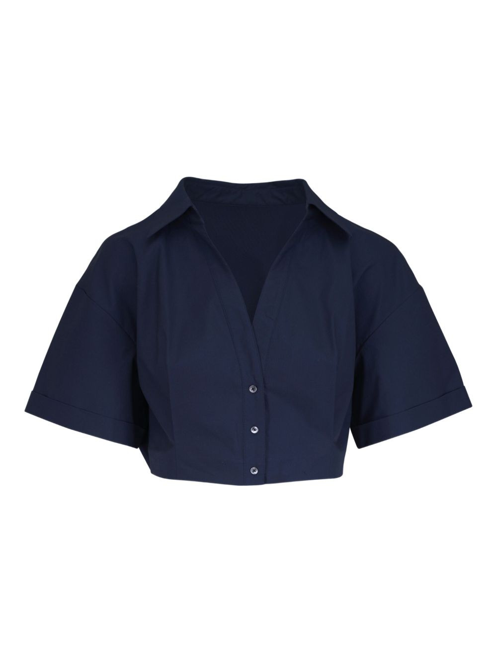 cotton shirt Highlights - Navy blue - Front button fastening - Spread collar - Short sleeves - Straight hem Made in United States Composition Cotton 100% Washing instructions Machine Wash