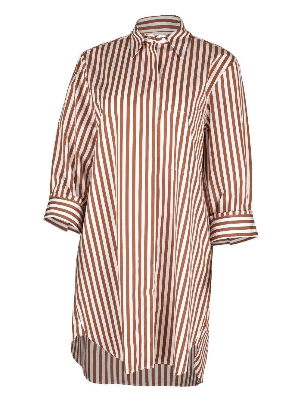 Morning After stripe shirt dress Highlights - Brown - Vertical stripes - Three-quarter sleeves - Button fastening - Chest pocket Imported Composition Cotton 100% Washing instructions Dry Clean Only