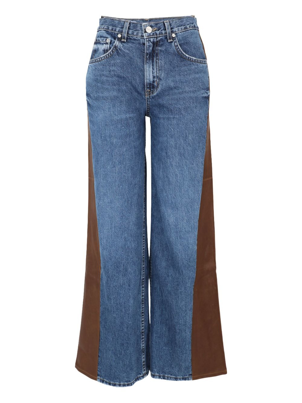 panelled denim straight-leg jeans Highlights - Blue - Brown panels - Button fastening - Straight leg Imported Composition Cotton 100% Washing instructions Read Manufacturer Guidelines