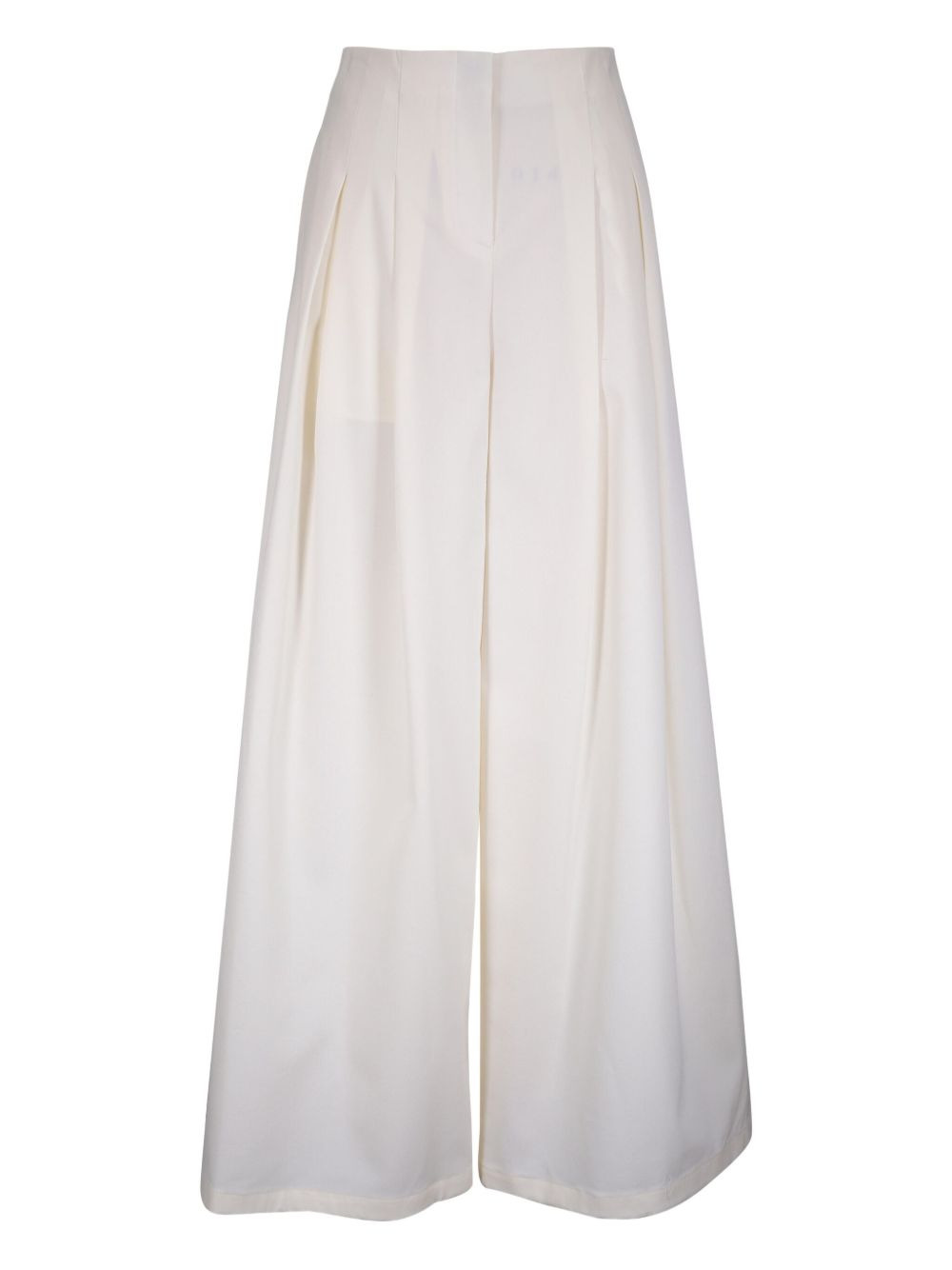 pleated trousers Highlights - Ivory - Pleated front - High waist - Straight hem - Concealed zip fastening Made in United States Composition Cotton 58%, Virgin Wool 40%, Elastane 2% Washing instructions Read Manufacturer Guidelines