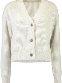 V-neck ribbed cardigan Highlights - Light grey - Ribbed knit - V-neck - Front button fastening - Long sleeves - Cropped Imported Composition Cashmere 100% Washing instructions Read Manufacturer Guidelines