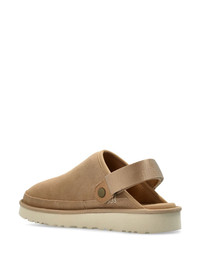logo-debossed slippers Highlights - Caramel brown - Elasticated slingback strap - Ridged rubber sole - Branded footbed - Round toe Imported Composition Outer: Calf Suede 100% Lining: Recycled Polyester 100% Sole: Polyethylene vinyl acetate (PEVA) 100%