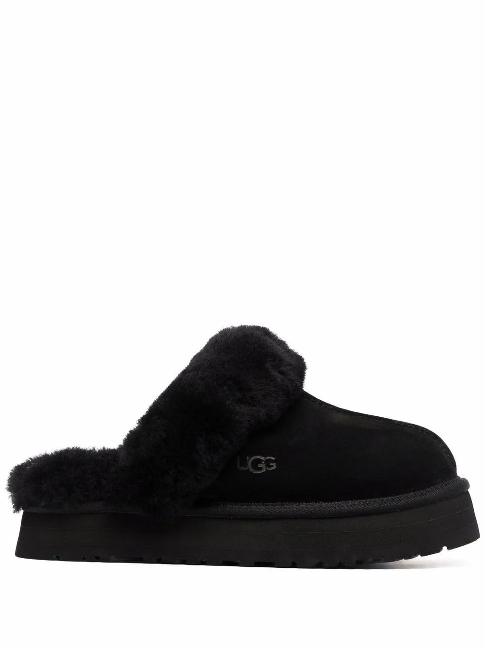 shearling-lined slippers Highlights - Black - Suede - Shearling lining - Round toe - Branded insole - Slip-on style - Ridged rubber sole Made in United Kingdom Composition Suede 100% SIZE & FIT Measurement HEEL 1.96 in(5 cm) PLATFORM 1.57 in(4 cm)