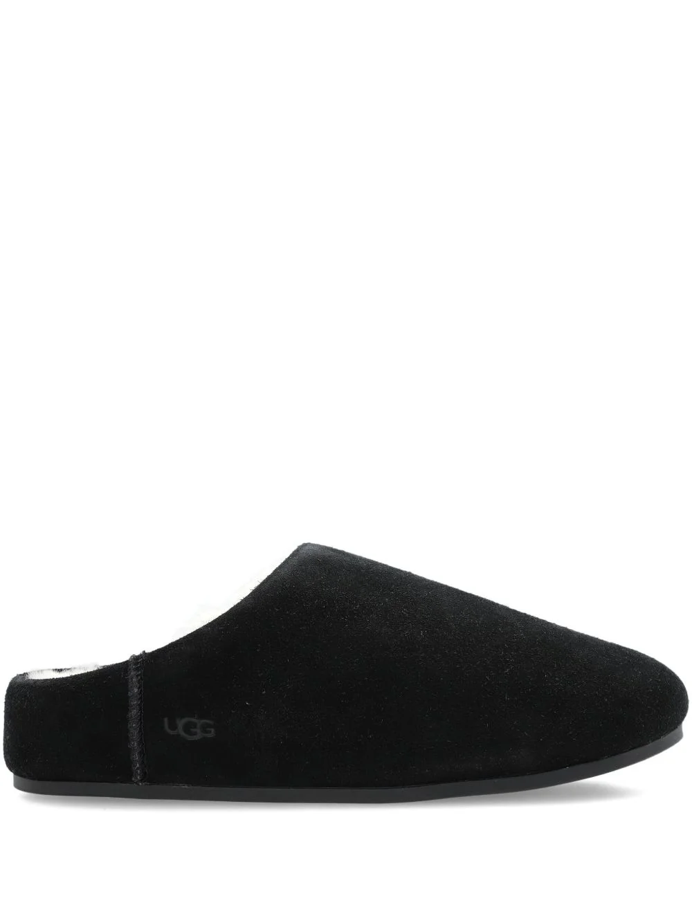 suede sheepskin slippers Highlights - Black - Suede upper - Sheepskin lining - Open toe - Slip-on style - Flat sole Imported Composition Outer: Suede 100% Sole: Rubber 100% Lining: Sheepskin 100% SIZE & FIT Measurement PLATFORM 0.39 in(1 cm)