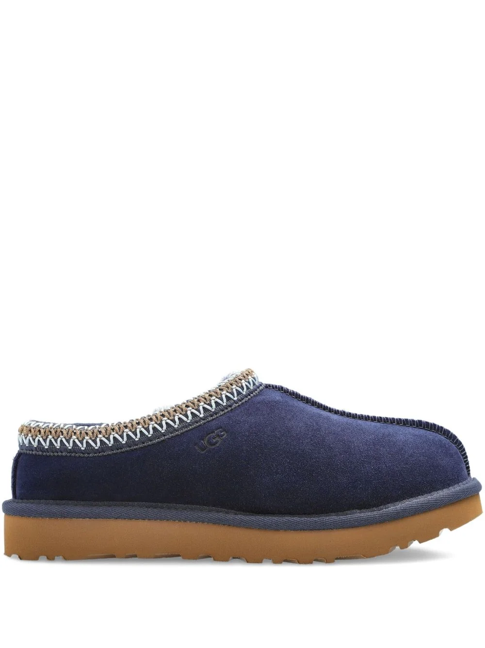 Tasman stitched-trim slippers Highlights - Navy blue - Suede upper - Decorative stitched trim - Sheepskin lining - Flat sole - Closed toe Imported Composition Sole: Rubber 100% Lining: Calf Leather 100%, Lamb Fur 100% Outer: Suede 100%