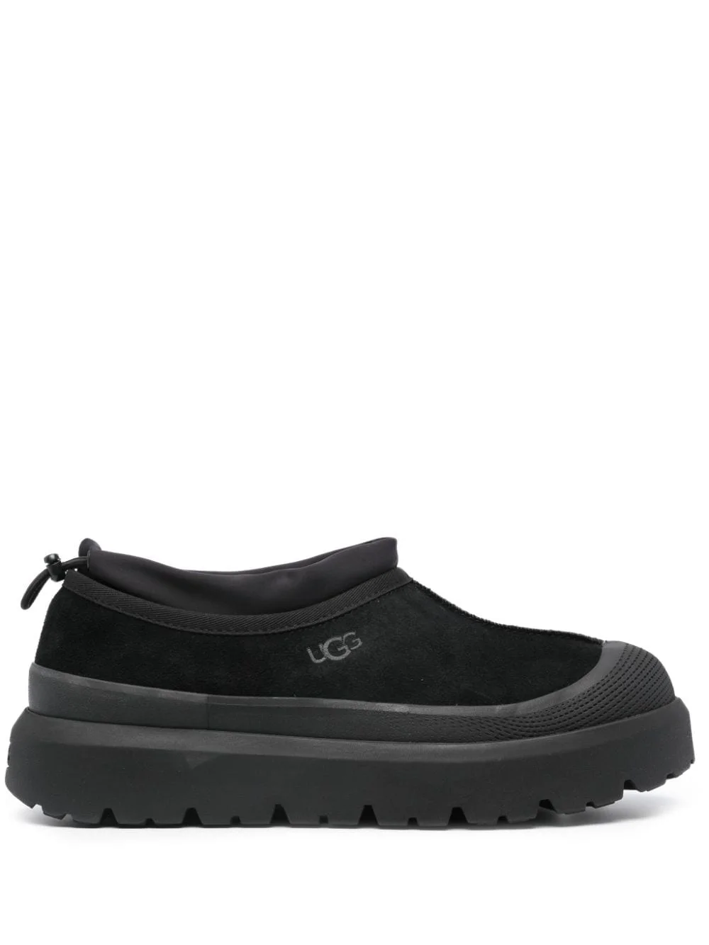 Tasman Weather Hybrid loafers Highlights - Black - Calf suede - Waterproof - Panelled design - Debossed logo to the side - Drawstring fastening - Round toe - Branded insole - Ridged rubber sole Imported Composition Outer: Suede 100%, Latex 55%, Recycled Polyester 45% Lining: Polyurethane 100%, Recycled Wool 60%, TENCEL™ Lyocell (LENZING) 40% Sole: Polyethylene vinyl acetate (PEVA) 100% SIZE & FIT Measurement HEEL 1.57 in(4 cm) Sole height 1.37 in(3.5 cm)
